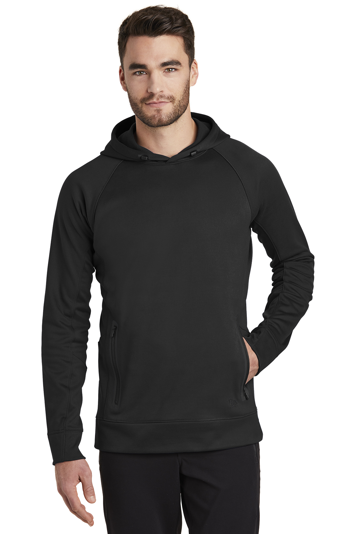 - Perfect for most venues this moisture-wicking fleece combines new-tech performance with old-school style. 6.2-ounce 100% polyester fleece Embossed New Era neck taping Heat transfer label for tag-free comfort 3-panel hood with rubber stoppers and drawcords Raglan sleeves Welded zippered pockets 2x2 rib knit cuffs Embossed silicone New Era flag logo at hem