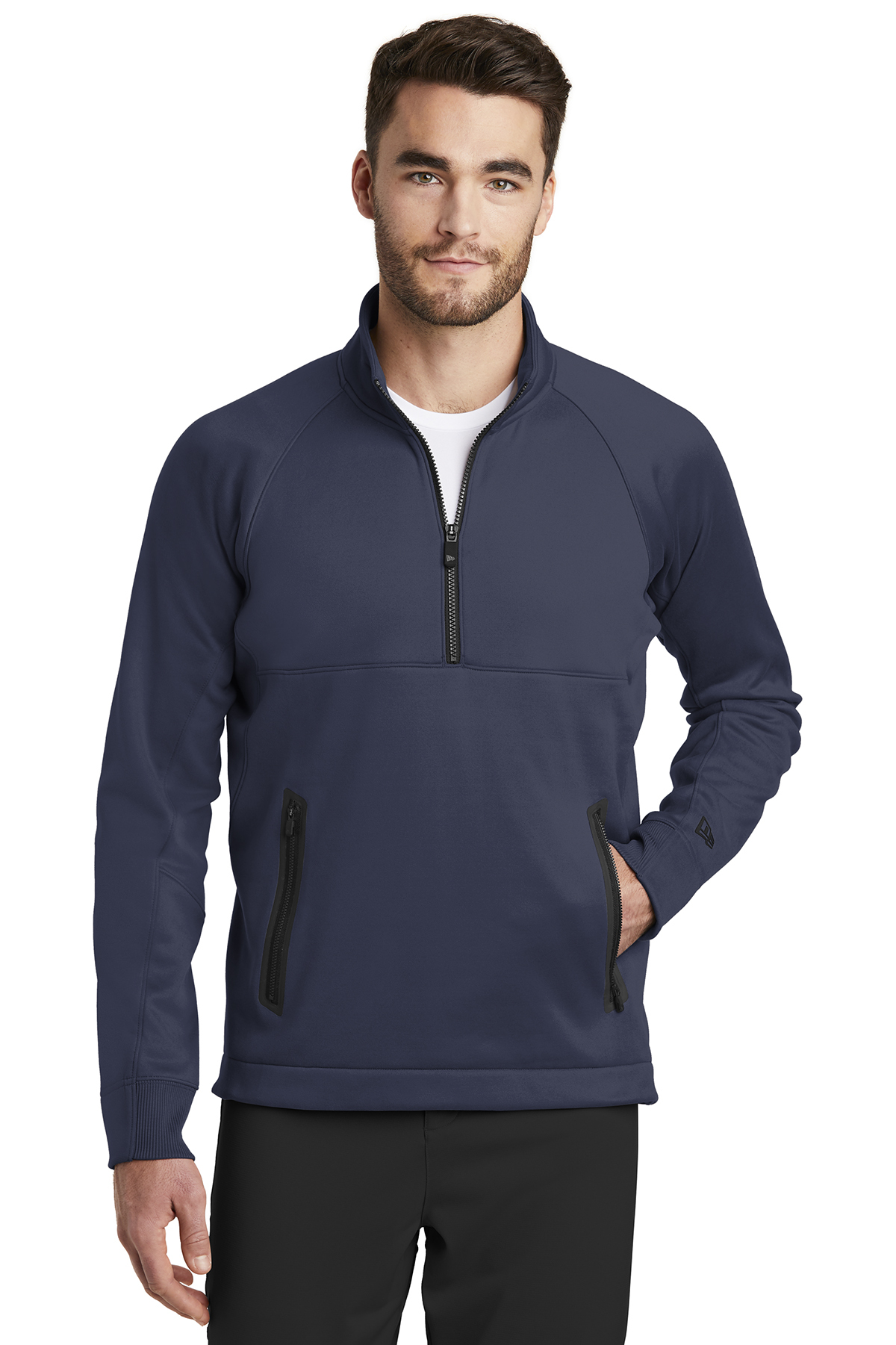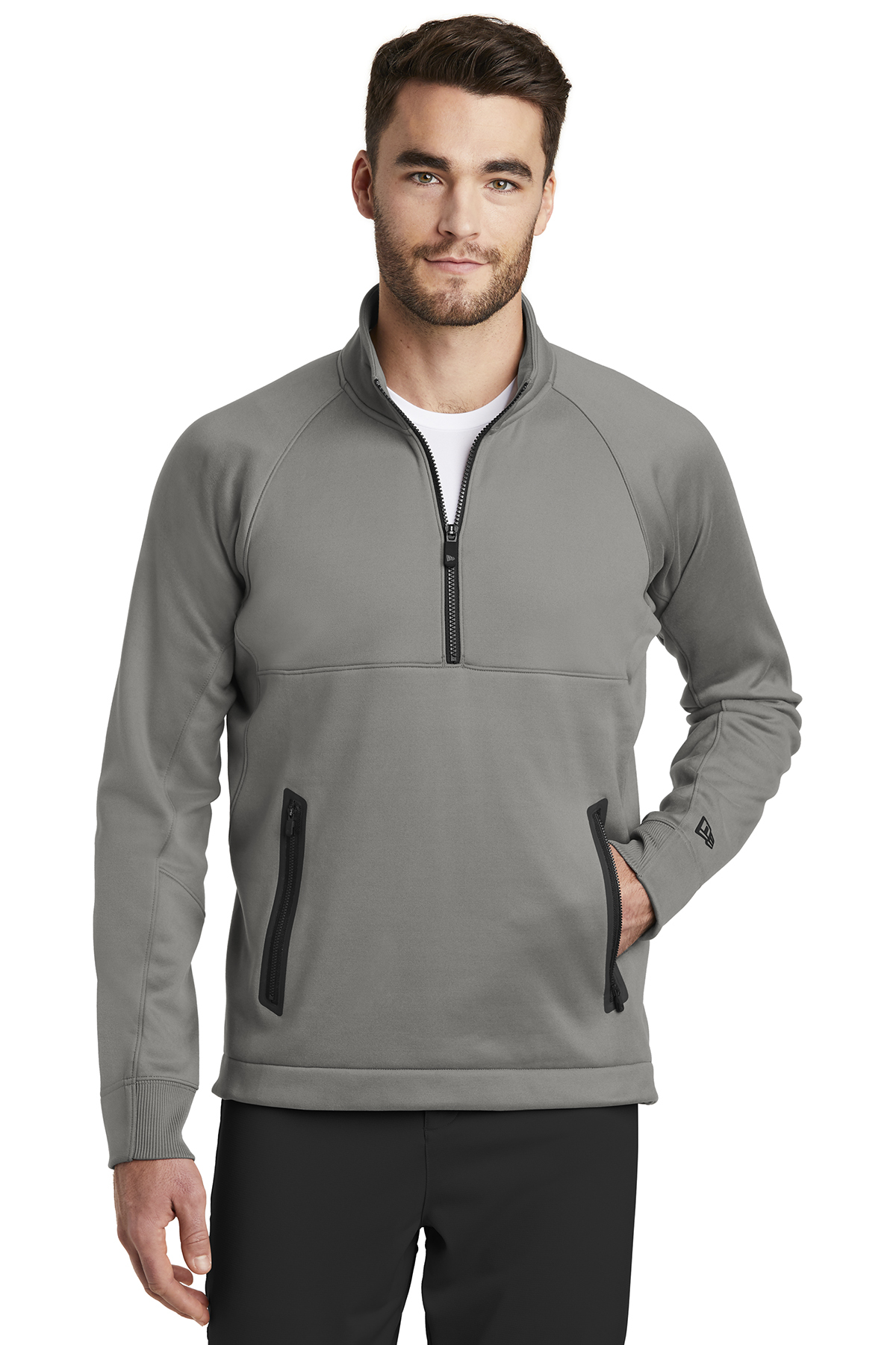- Perfect for most venues this moisture-wicking fleece combines new-tech performance with old-school style. 6.2-ounce 100% polyester fleece Embossed New Era neck taping Heat transfer label for tag-free comfort Raglan sleeves Embossed silicone New Era flag logo at left sleeve Exposed Vislon zipper Matte black zipper pull debossed with New Era flag logo Welded zippered pockets