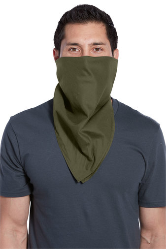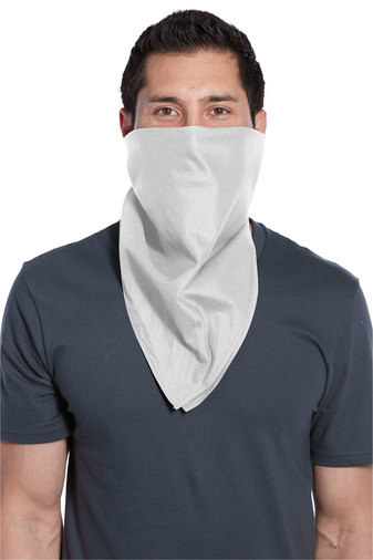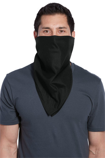 - Sized larger than an average bandana this durable bandana offers more face covering and decoration space. Versatile and multifunctional it can also serve as a headband or neckerchief. Fold bandana diagonally and tie around head to cover face as desired. 80/20 poly/cotton sheeting Finished seams prevent fraying Measures: 23 x 23 Machine washable
