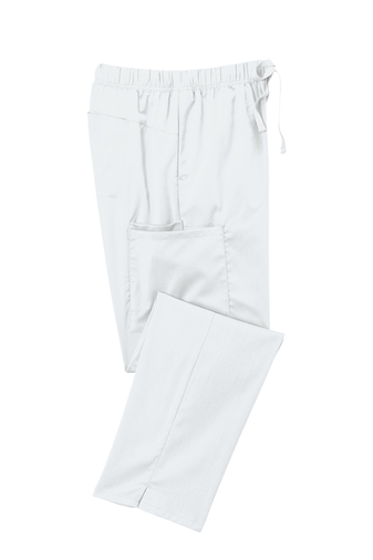 - 78/20/2 poly/rayon/spandex Full drawstring and elastic waistband Front slash pockets Right side cargo pocket with interior pocket Back yoke Back pocketsStraight leg WonderWink heat transfer logo at front left pocket Modern fit 31-inch inseam