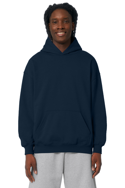 - A boxy hoodie with a dry hand feel. The unique character of organic cotton French terry provides a perfect place for a brand logo.